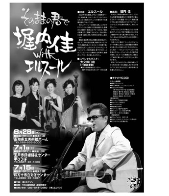 6,7月の県内3箇所でのコンサートツアーのチケットが販売開始となりました!久々の県内での”・・・のアーティスト”という枕詞のないフリーなコンサート。何度も佳さんコンサートを体験された方も、初めての方も、新たな魅力を発見できる満足度の高いコンサートとなること間違いなしです!昨年のフレンドリークリスマスに続いてのエルスールとの共演も楽しみですね(^^)♪
