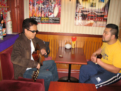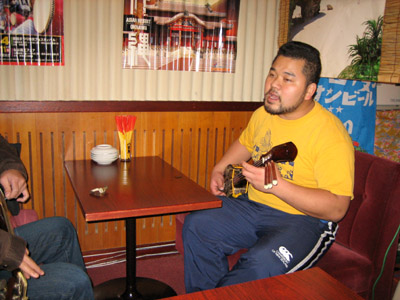 とやまさんが三線を弾きながら「島んちゅの宝」を歌って、それにkeiさんがギターを合わせて、即興のセッションが始まります。