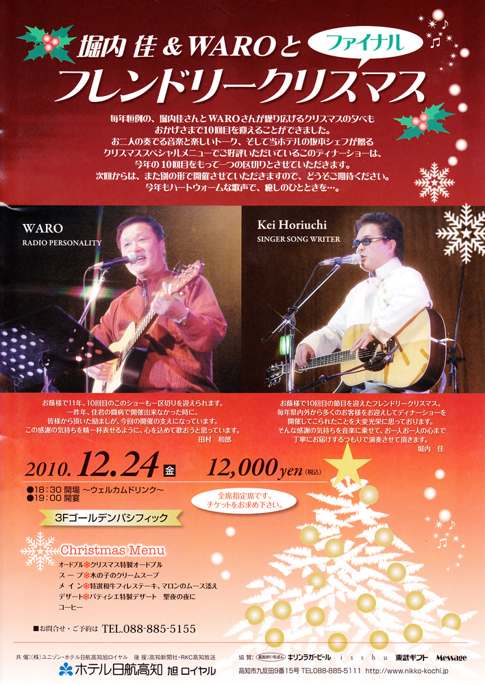 『堀内佳&WAROとフレンドリークリスマス』の開催が決定しました!